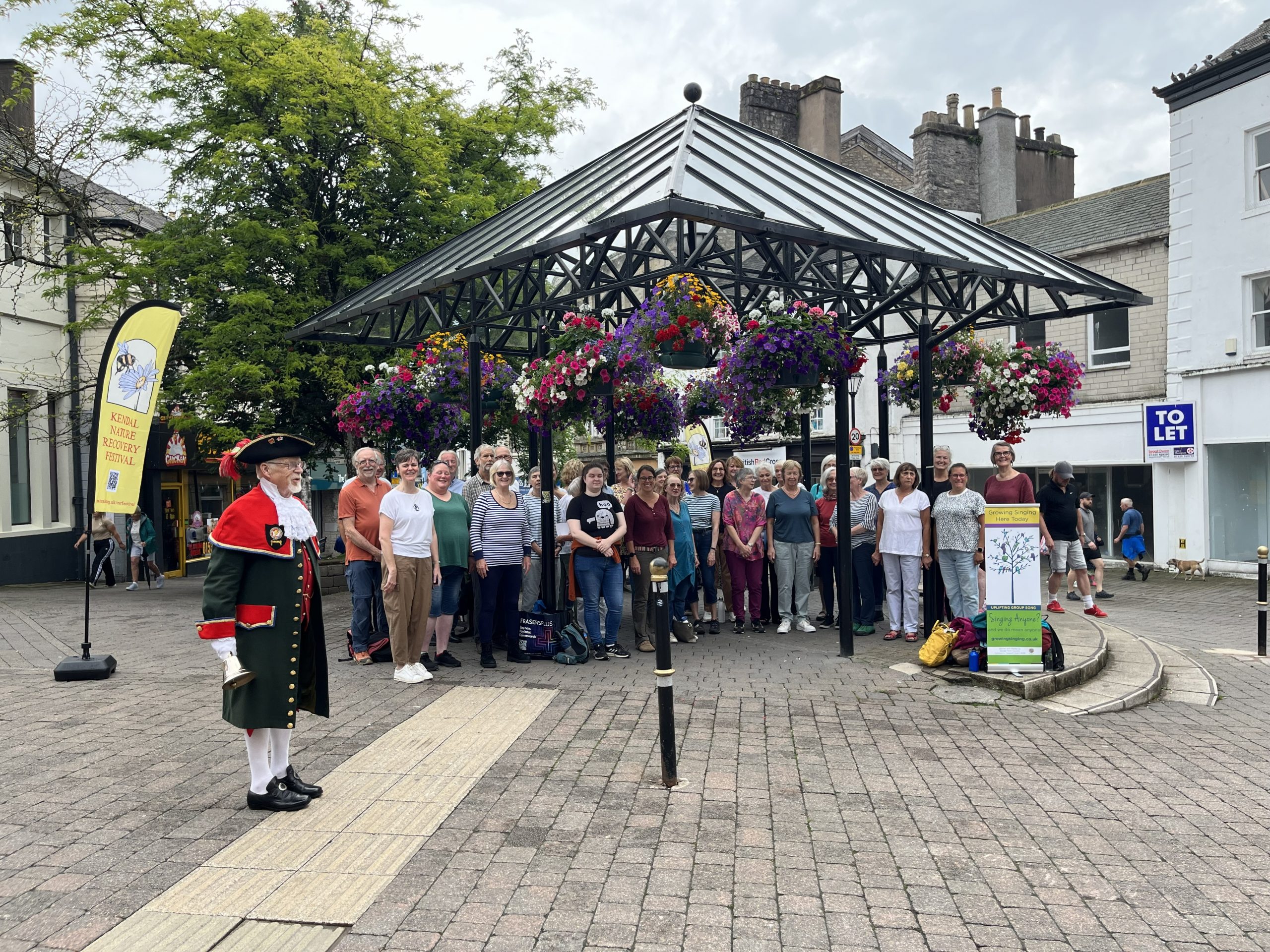 The Growing Singers entertained the good people of Kendal in support of our first Nature Recovery Festival. The sun shone and an appreciative audience gathered round us as we sang. Later in the day, we sang in the surprisingly beautifully resonant space near all the stall holders of the festival. Thank you to everyone who stopped, smiled and listened to us! We so enjoyed adding our support and songs to this important cause.