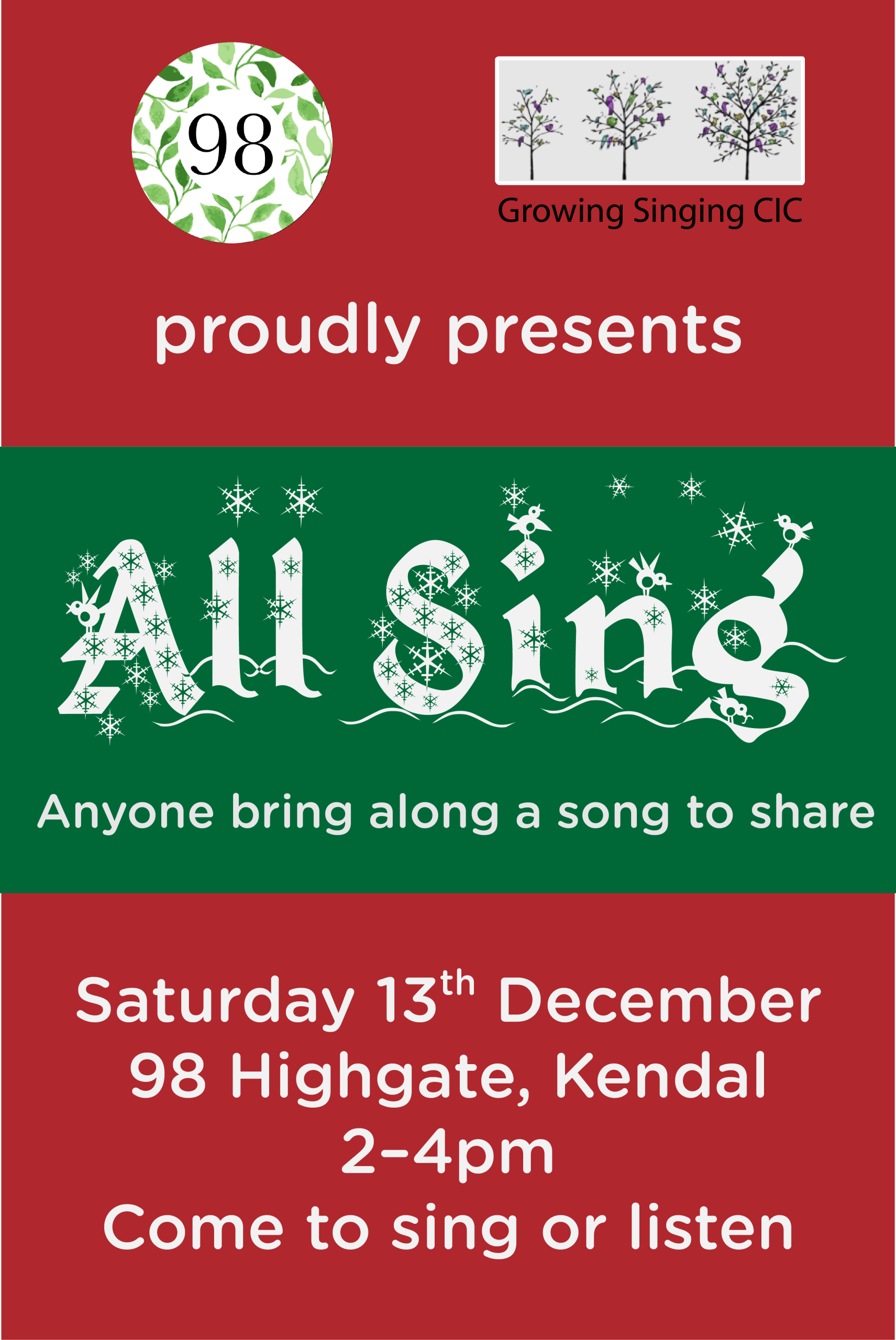 Singers filled 98 Highgate with song, chat and a lovely welcoming atmosphere. Thanks to all who came along – we raised an amazing £210.57 for Growing Well.